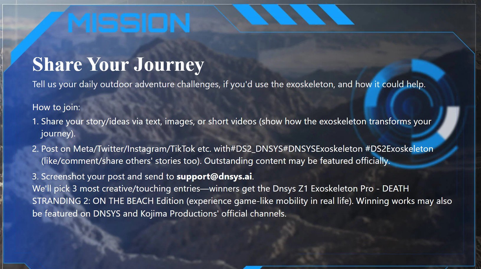 读者可登录产品网站注册以获得 Z1 Exoskeleton Pro 的最新消息。希望有机会免费获得该产品的读者,,请仔细阅读并关注赠品详情。.与此同时,何不玩玩亚马逊上有售的《死亡搁浅 2:海滩上》 呢?