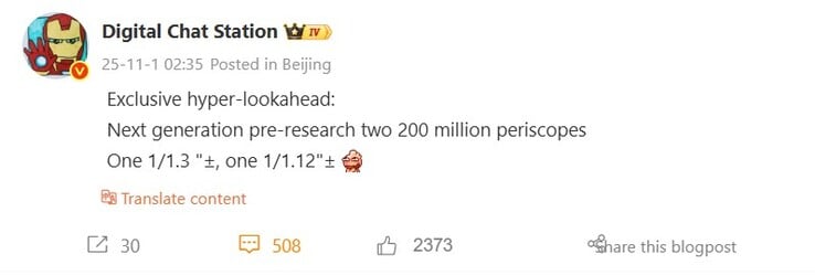 展望未来,中国泄密者 Digital Chat Station 在最近的一条微博中声称https://weibo.com/6048569942/QbN9d7Es4OPPO Find X10 Ultra 原型机可能要到 2027 年才会投入量产,前提是该项目不会提前取消。帖子称,Oppo 目前正在尝试使用双 200 MP 潜望式长焦系统,该系统由一个 1/1.3 英寸传感器和一个 1/1.12 英寸传感器组成。除了 ISOCELL HP2 等经典的三星传感器外,传感器的尺寸也指向了新的索尼 200 MP 传感器,该传感器预计将于 2026 年初推出,型号为 LYT-910,也有望搭载在 Vivo X300 Ultra 上。