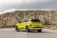 2024 年,Kona EV 采用了相同的单电机前轮驱动动力系统,最大功率为 150 千瓦(201 马力),最大扭矩为 255 牛米(188 磅-英尺)。电池容量和续航里程现在分别达到 64.8 千瓦时和 260 英里(418.43 公里),不过风阻系数从 0.29 降至 0.27。