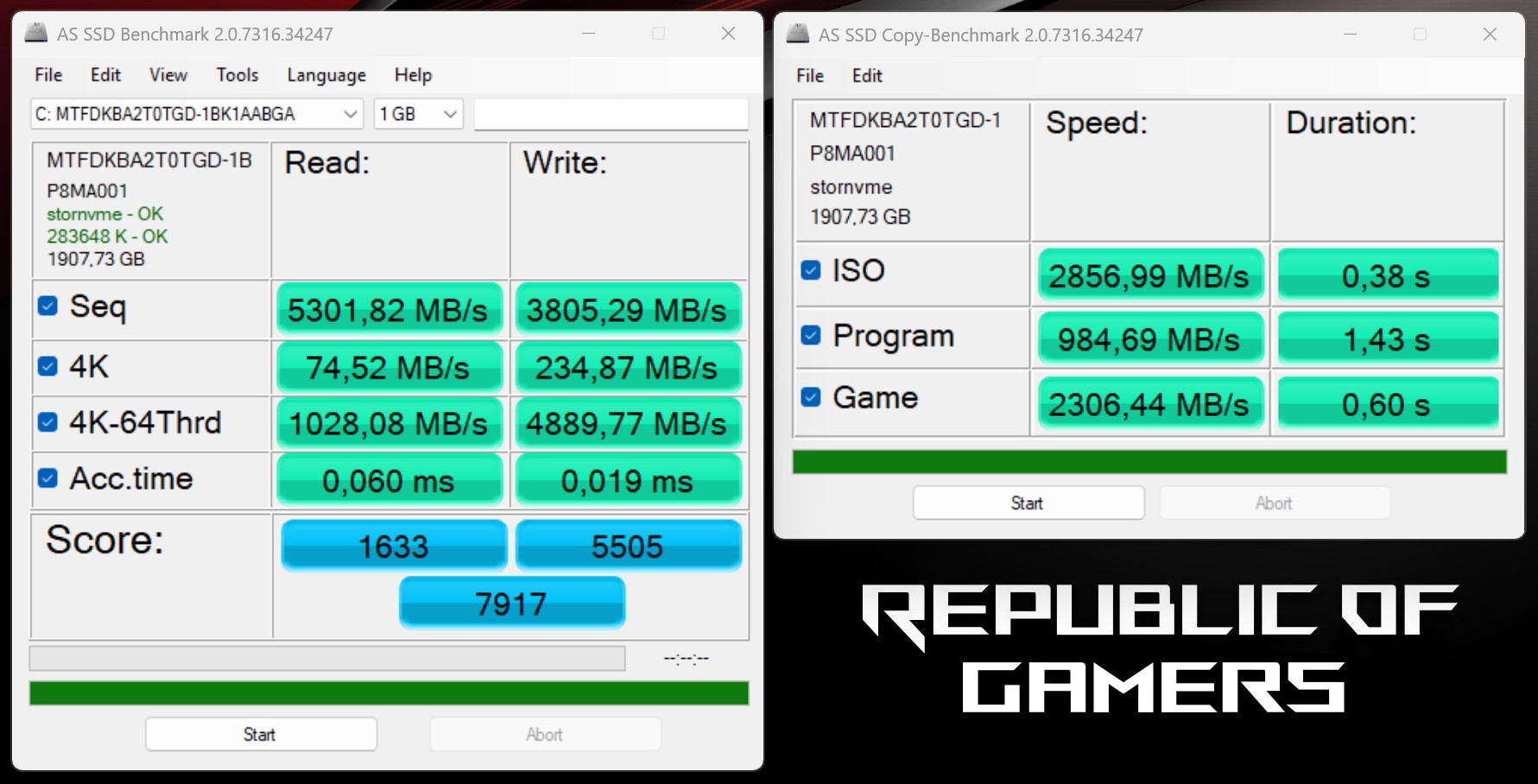 | Connectivity - USB 3.x / USB4 / TB - AS SSD Seq Read Test (1GB) | |
