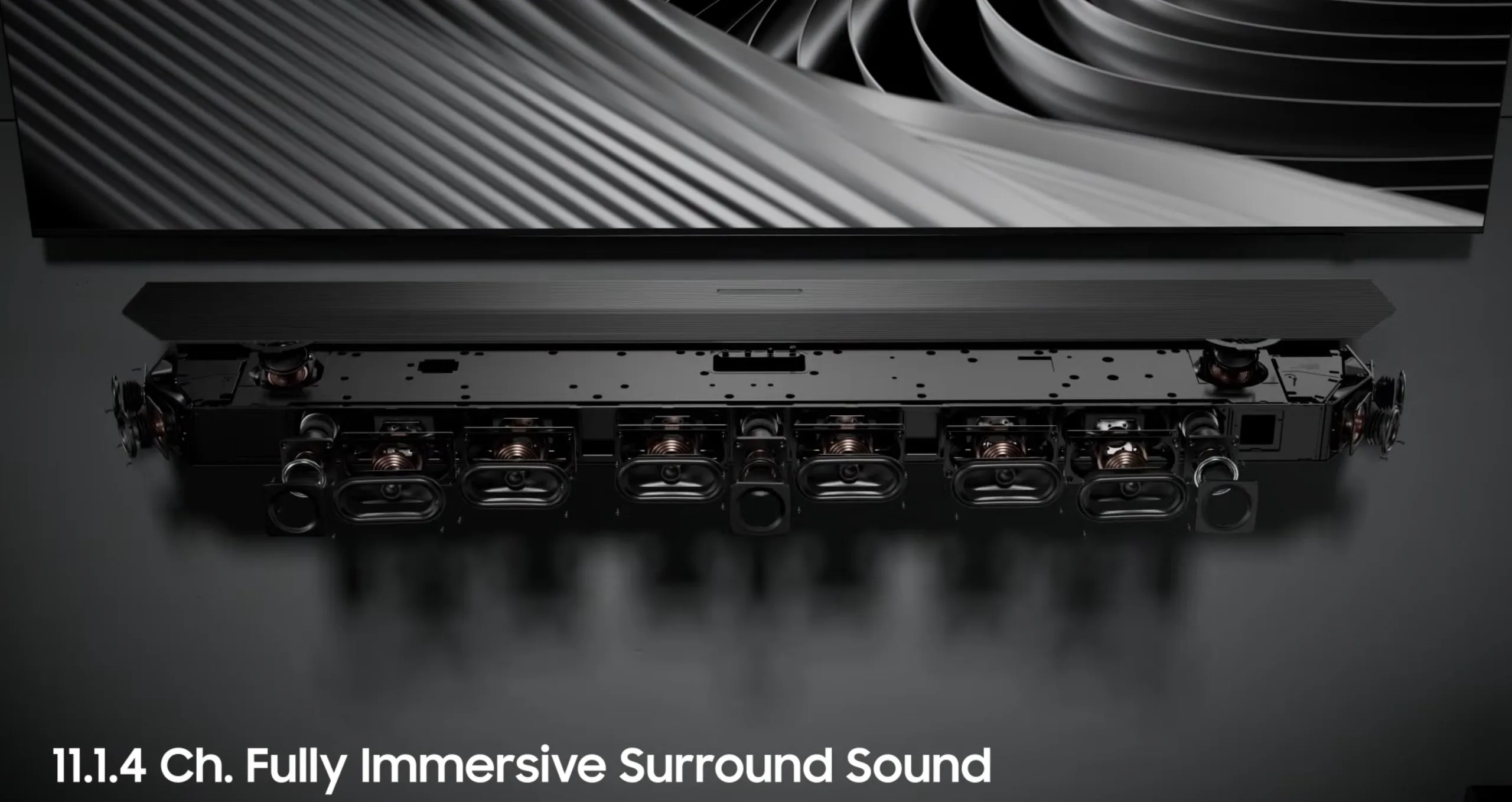 三星还为软件处理注入了更多的人工智能。例如,升级后的 AI Adaptive Sound 可实时调整音量和清晰度,以匹配您的内容流,而增强的 SpaceFit Sound Pro 则利用条形音箱和低音炮上的麦克风,根据您特定的房间环境调整声学输出。