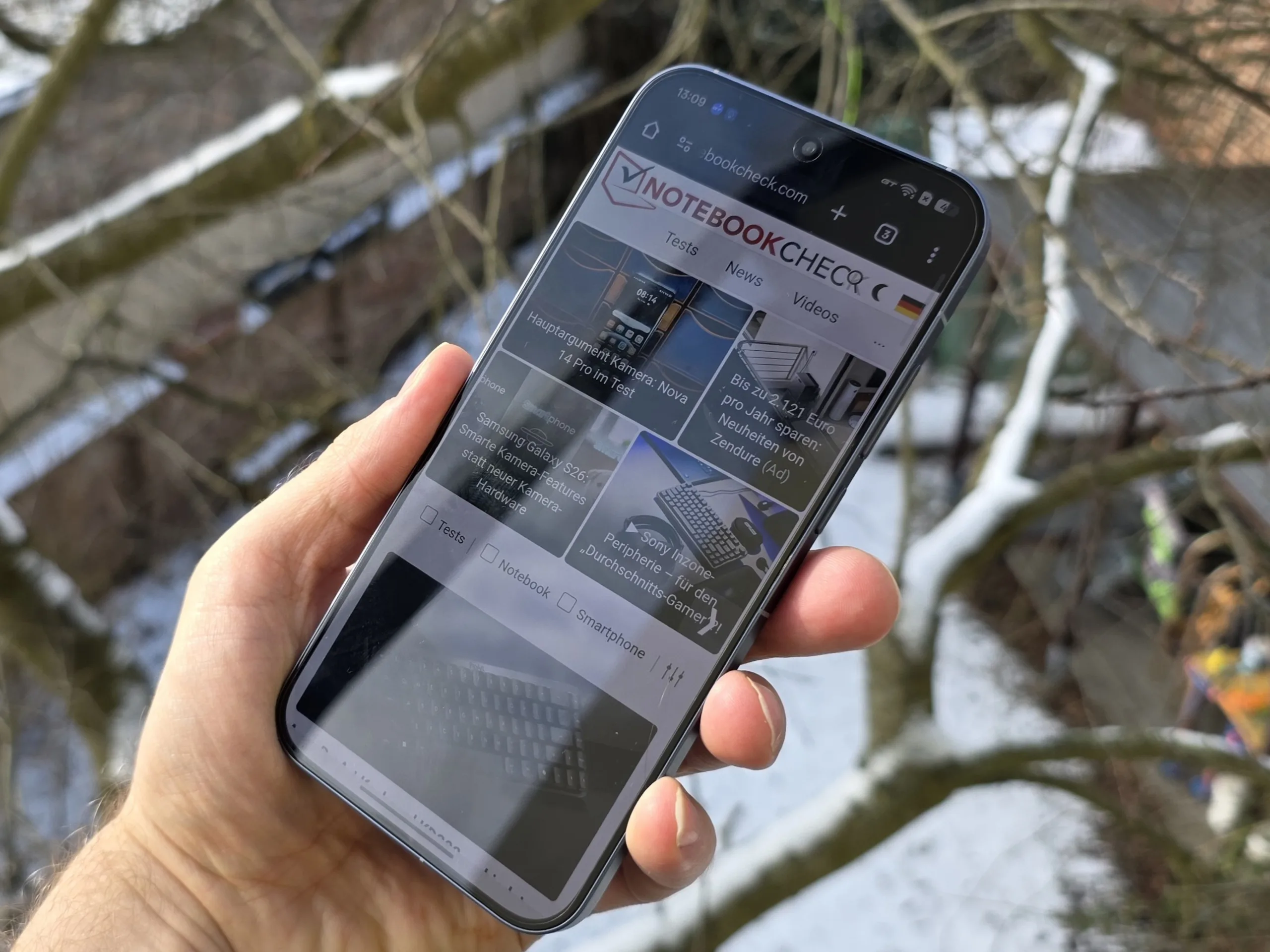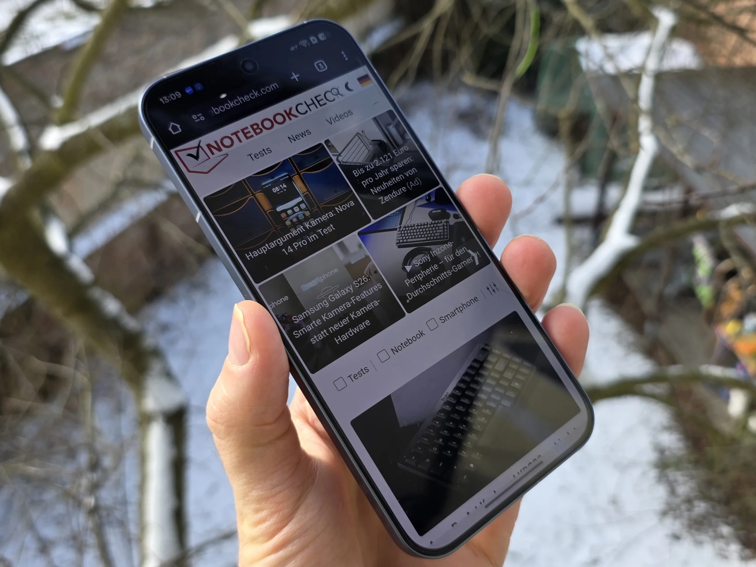 Choose a scene and navigate within the first image. One click changes the position on touchscreens. One click on the zoomed-in image opens the original in a new window. The first image shows the scaled photograph of the test device.