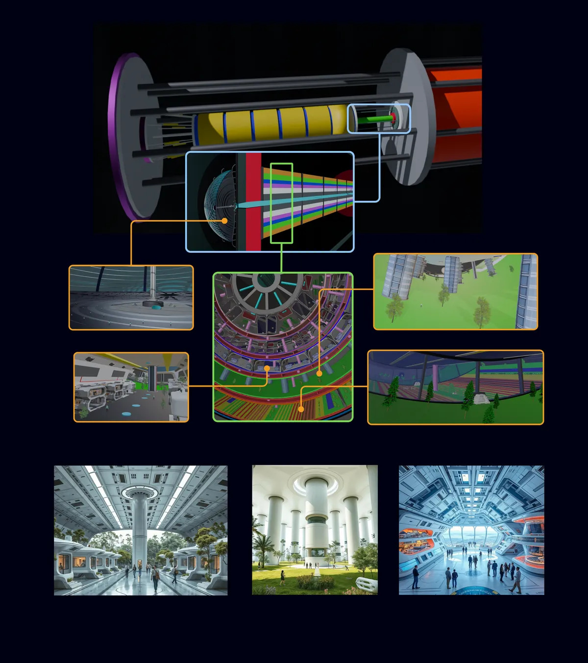 当然,如果你在太空中旅行,就必须告别重力。但重力对人体非常重要。因此,这个 飞船可以通过自转产生人造重力,从而避免许多问题。