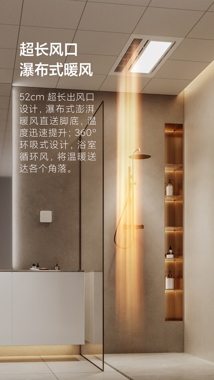 小米公司在中国推出了米家智能浴霸。在中国推出。这款新设备有一个AC双核电机,可以为你的浴室提供温暖或冷却。该小工具的加热范围为52厘米(约20.5英寸),加热功率高达2400瓦;小米声称,该加热器可以在短短一分钟内达到10℃(约50°F)。