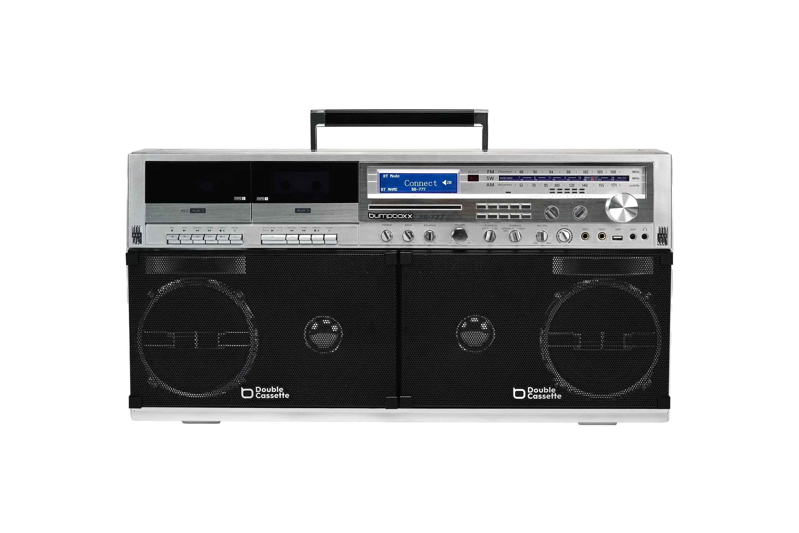 BB-777 是一款新型便携式系统,将多种播放格式整合到一个设备中。它支持卡带、CD、收音机、USB 和蓝牙,如果您选择随身携带,则无需单独的设备。
