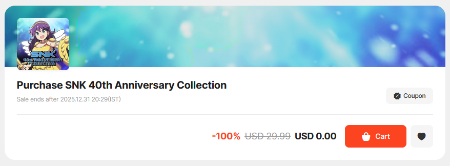 SNK 的复古街机捆绑包刚刚在 Stove 商店免费发布。.电脑玩家现在可以免费获得该公司早年的 24 款经典游戏合集。SNK 40 周年合集》通常售价 29.99 美元,现在以 0.00 美元的价格上市,并在有限的时间内享受 100%的折扣。