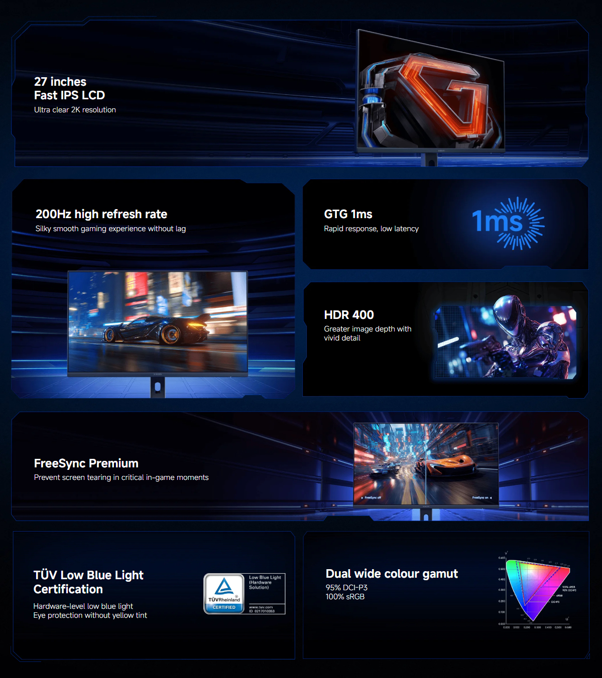 概括地说,2K 游戏显示器 G27Qi 2026 是 2K 显示器 A27Qi 2026 更快的替代产品。 2K 显示器 A27Qi(亚马逊当前售价为 184.99 美元)的替代品。请注意,小米暗示这两款产品都提供 2K 分辨率是错误的。相反,这两款产品的输出分辨率为 2,560 x 1,440 像素,也就是通常所说的 2.5K 或 1440p。抛开这一点不谈,2K 游戏显示器 G27Qi 2026 的 27 英寸 IPS 面板刷新率也达到了 200 Hz。