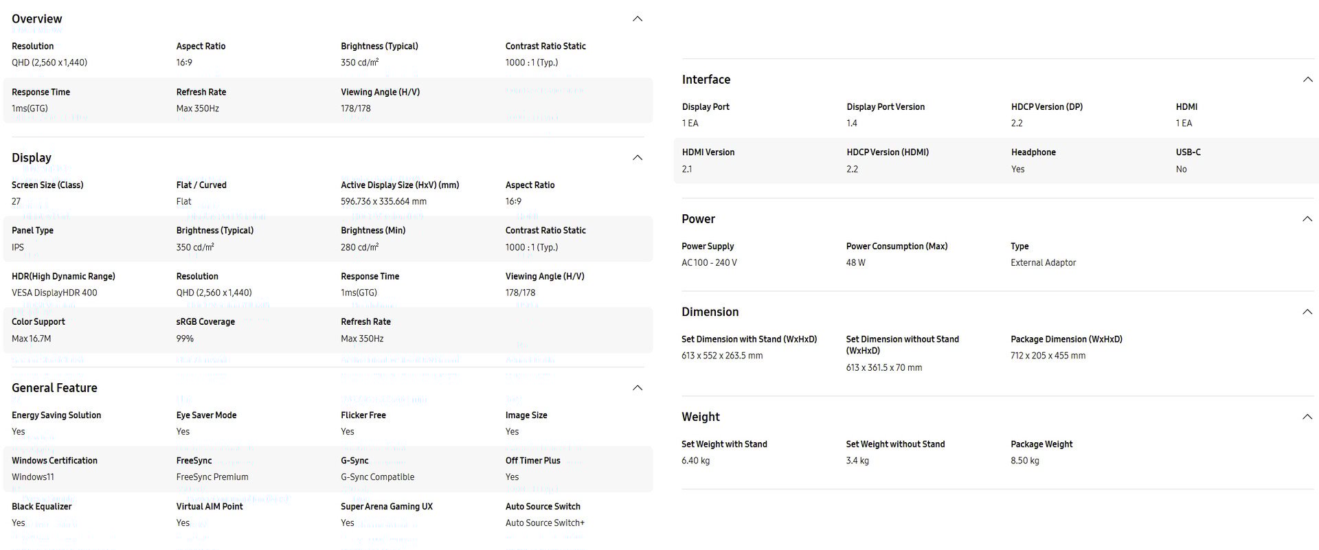 这款 350 Hz 游戏显示器的其他亮点还包括 99% sRGB 覆盖率、带 DSC 的 DisplayPort 1.4、HDMI 2.1、支持 VESA 安装和无闪烁 WLED 背光。有关三星奥德赛 G60F 的更多信息,请参阅下面附带的规格表。