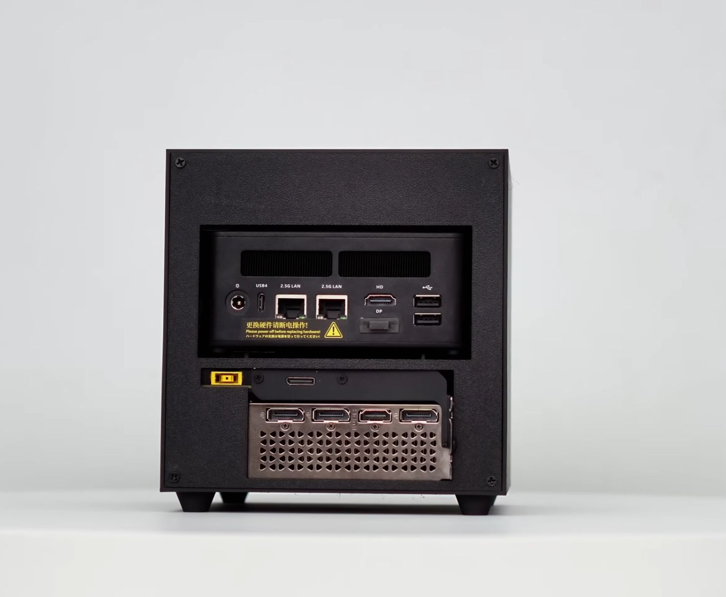修改者说,该外壳使用耐热的 ASA 长丝打印而成,并设计有集成导轨,使迷你 PC、GPU 底座和冷却硬件无需复杂的安装硬件即可滑动到位。