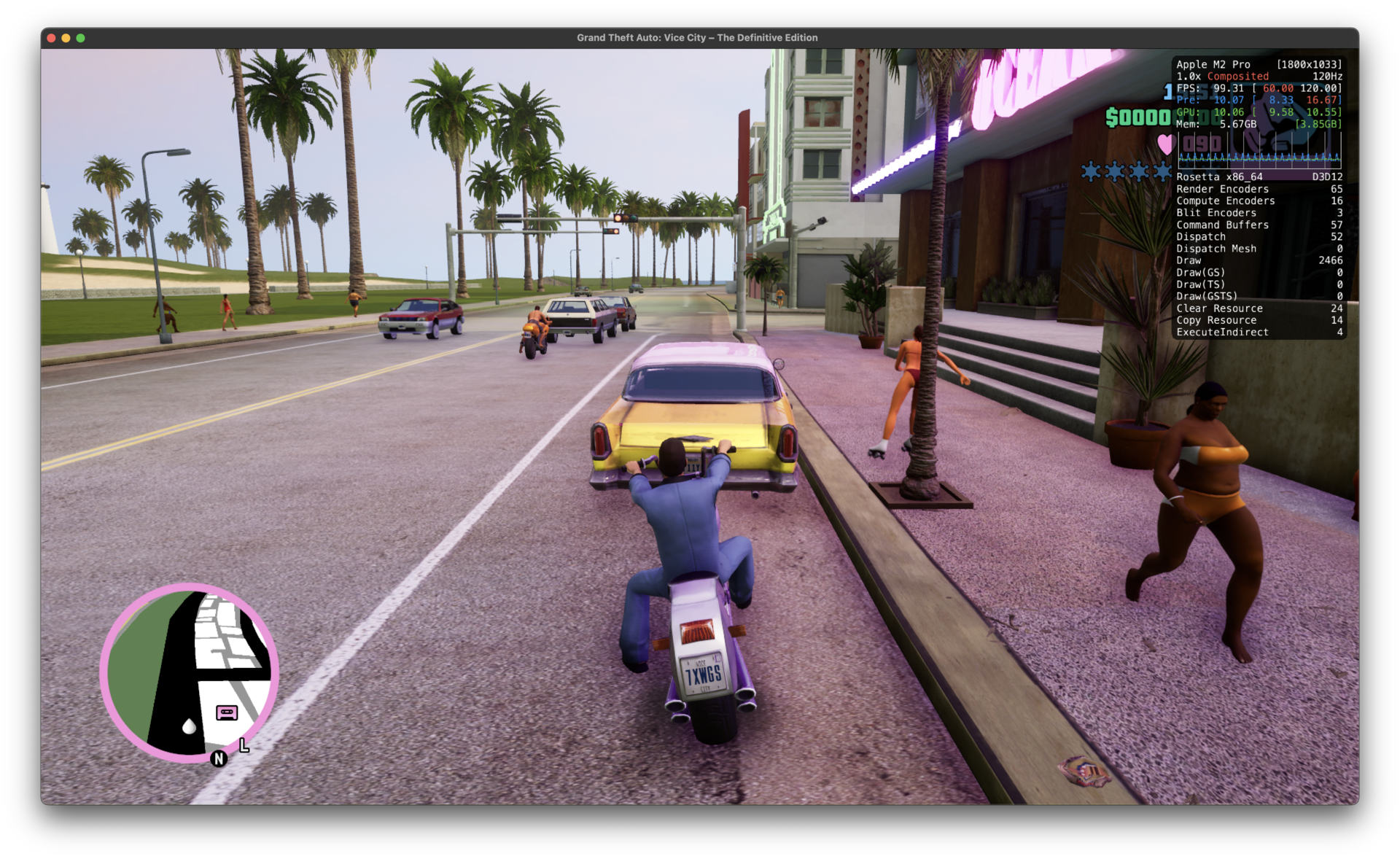 在M1 Pro上运行的Elden Ring M1 Pro在1728 x 1117分辨率下运行,接近50帧,而M2 Pro M2 Pro在《GTA 3》副城中以1800 x 1033的分辨率运行,成功达到100多帧。