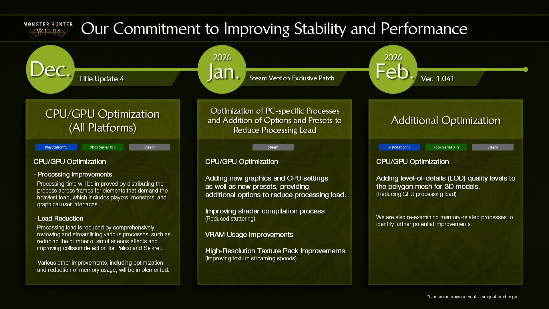 怪物猎人荒野大镖客》标题更新 4 是旨在提高《荒野大镖客》性能的两个跨平台更新中的第一个,也是旨在适当优化 PC 版游戏的三个更新中的第一个。值得称赞的是,卡普空似乎在更新中做了很多有益的工作,使游戏对 PC 用户来说更具可玩性。正如承诺的那样,计划中的更新 将延续到 2026 年在游戏总监恳求粉丝们 "再给一次机会 "之后,第 4 次标题更新很快就发布了。再给一次机会"这不太可能是巧合。在不久的将来,随着游戏的重新平衡和进一步优化,《怪物猎人荒野行动》能否重新赢得广大怪物猎人粉丝的喜爱?