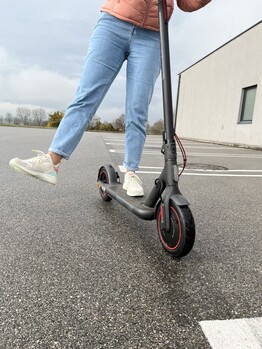 小米承诺在轮胎方面有很多技术。使用了无内胎的10英寸充气轮胎,由于 "DuraGel "结构,它具有特别的吸震性能,而且还应该是自密封的。至少这就是小米产品页面的承诺。在实际测试中,我们体验到这种尺寸的轮胎应有的乘坐舒适性,没有任何特别明显的优势或劣势。轻微的颠簸是没有问题的,但应该避免坑洞或几厘米以上的低矮路边。滑板车4 Pro也希望在尽可能好的道路上行驶。