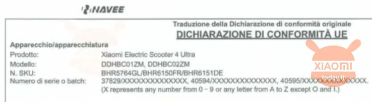 小米电动滑板车4 Ultra正在欧洲各地推出。在XiaomiToday.it发现一份合格声明(如下)后,这款功能强大的新车型预计将很快在意大利推出。.该文件由小米的专用电动滑板车品牌Navee提交,型号为DDHBC01ZM和DDHBC02ZM。