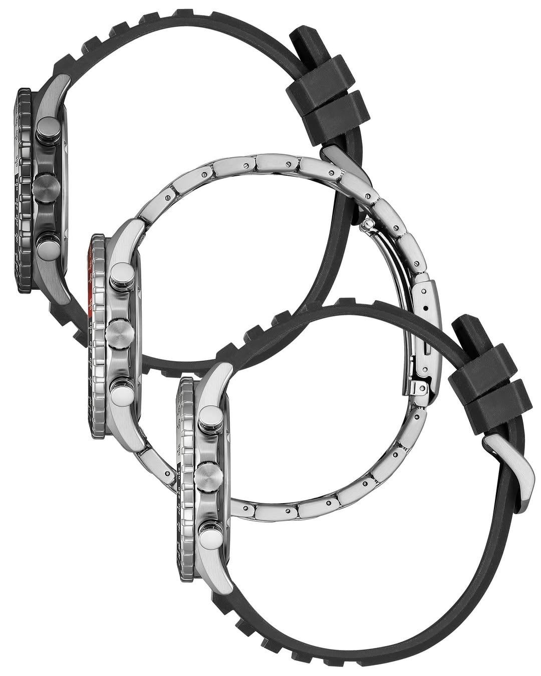 三款腕表的设计配置各不相同。AT2565-05E 配有镀黑不锈钢表壳和绿色子表盘,搭配黑色纹理橡胶表带。AT2566-88E 采用标准银色表盘,搭配红黑双色表圈和多链节不锈钢表链,总重 153 克。虽然 10 巴防水性能使这些表款适合中度水上活动,但在这个价位选择矿物表镜而非蓝宝石表镜,对于喜欢抗冲击而非防刮伤的消费者来说,是一个很大的机械权衡。