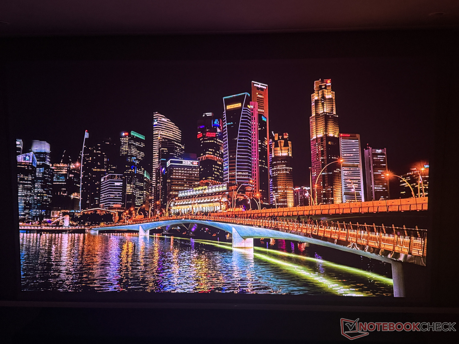 在昏暗的房间里,图像效果更加出众。凭借其 NoirScene 系统、EBL 算法(增强黑阶)和 6 级 IRIS 的黑色涂层叶片,Valerion VisionMaster Max 在测试中提供了许多投影机无法比拟的丰富而深邃的黑色。当图像边缘为黑色时,几乎没有明显的过渡到无光的画布。