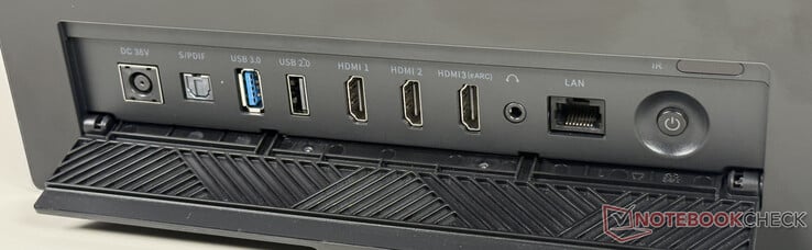 除了三个 HDMI 2.1 端口(一个 eARC)外,还有两个 USB 端口(一个 2.0,一个 3.0)、一个数字(S/PDIF)和一个 3.5 毫米插孔音频端口,以及千兆位 LAN(而不是便宜型号上的 100 Mbit/s)。 Apple AirPlay 2、Chromecast、Miracast 以及 WLAN ax 和蓝牙也可用于无线传输。VisionMaster Max 还可以与智能家居系统Apple Home、Google Home、亚马逊 Alexa 和 Control4 连接。