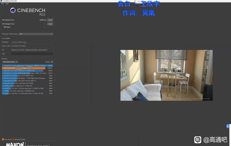 据报道,酷睿至尊 5 245K 在 Cinebench R23 多核测试中的得分约为 25,495 分。.在测试过程中,14 核 CPU 的运行频率似乎为 4.19 GHz。