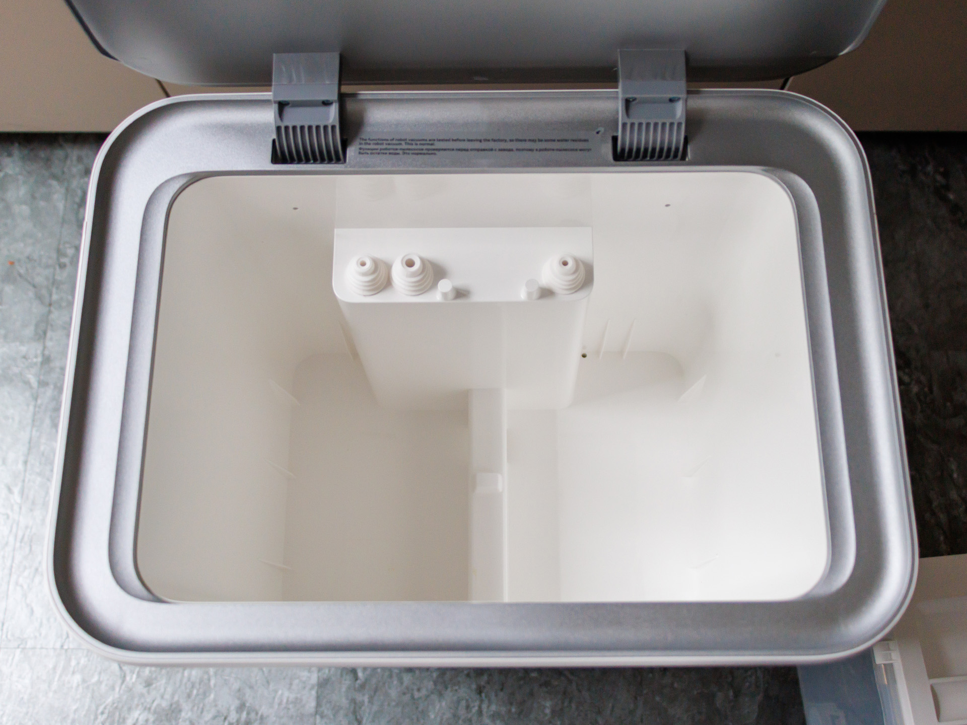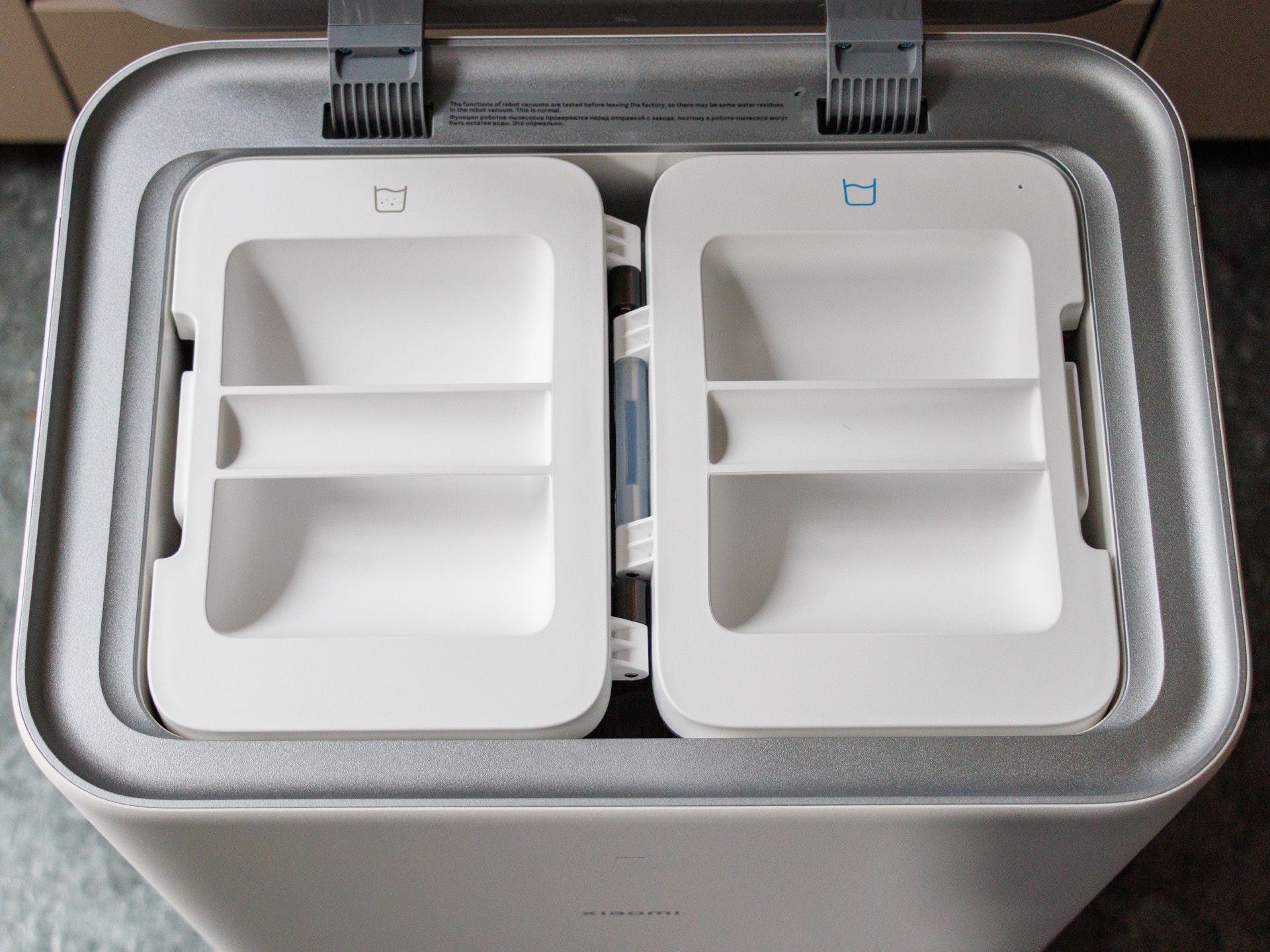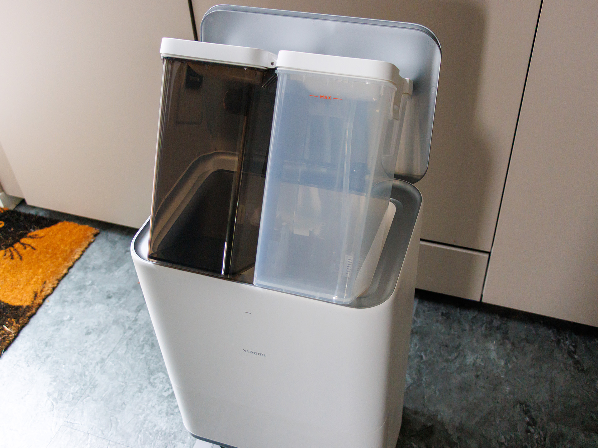 集尘箱比较小,因此在清洁大面积区域时,机器人真空吸尘器/拖把需要更频繁地返回充电站。拖把还可以用 80°C 的热水自动清洗。遗憾的是,小米机器人吸尘器 5 Pro 没有清洁液箱,只能用水拖地。我们发现开箱后的用水量相当低,这也是我们大部分测试都在 3 级进行的原因。充电站中的满水箱足够拖 240 多平方米的面积。