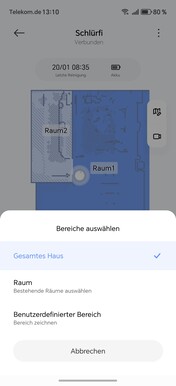 在导航方面,小米机器人吸尘器 5 Pro 通常做得很好。它能整齐地绘制房间地图,但在我们的测试中,吸尘拖地机器人不愿走到床下,尽管床下有足够的空间(12 厘米高),它还是把床当成了坚固的障碍物。机器人真空吸尘器 5 Pro 在沙发(边缘高度为 15 厘米)上没有任何问题。