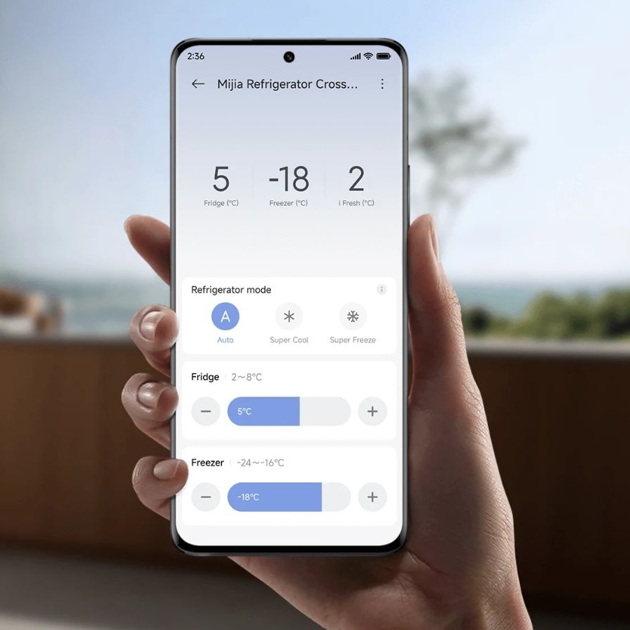 小米米家十字对开门冰箱被该公司描述为一款 "高端 "和 "多功能 "设备。它的 502L 容量分布在三个区域:297L 的冷藏室、176L 的冷冻室和 29L 的 iFresh 区域。iFresh 可转换区的工作温度与冰箱的其他区域分开,可提供-1 至 5°C (30 至 41°F)的制冷。小米公司认为,这对于冷藏饮料或延长农产品保鲜期非常有用。抗菌银离子模块据说可以减少异味,提高新鲜度。用户可以根据自己的需要选择自动、超冷和超冻三种制冷模式。