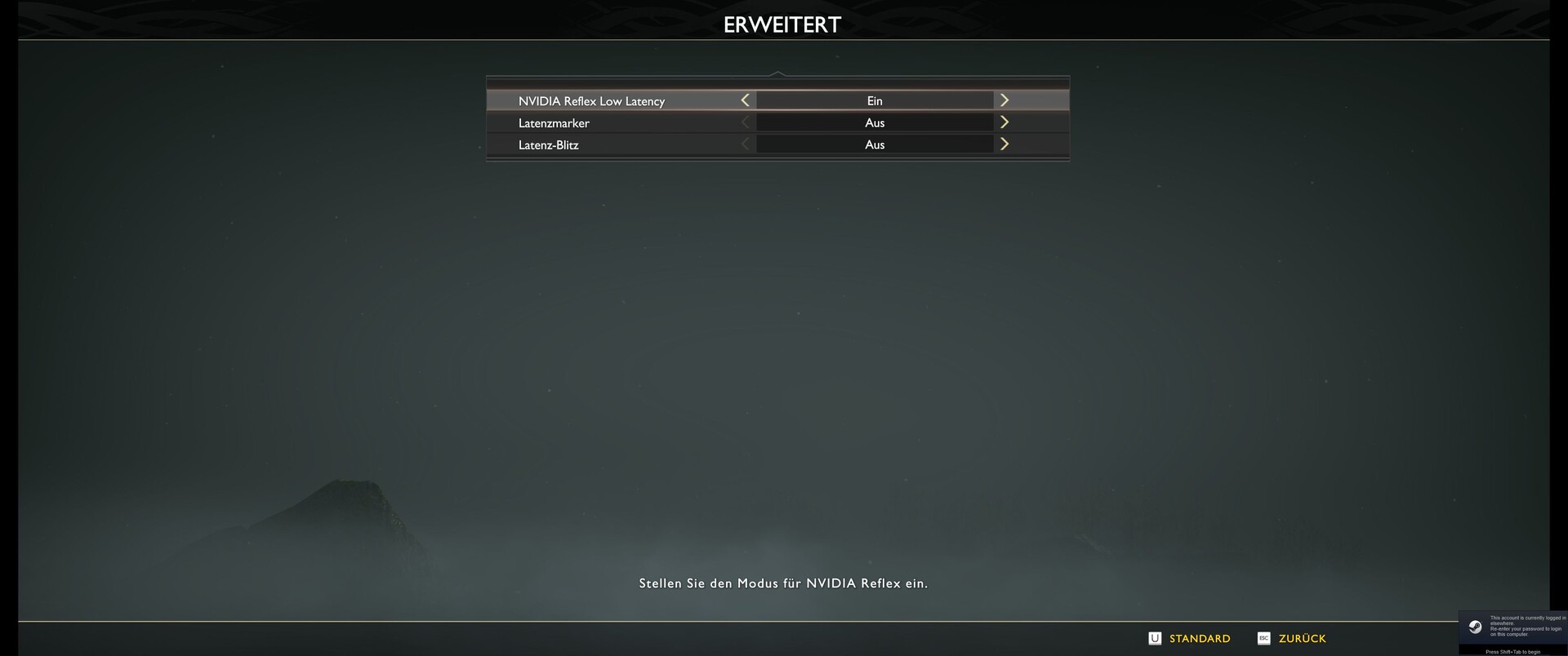 大部分的图片选项都在显示菜单中。在这里,你不仅可以调整分辨率(不幸的是,没有经典的全屏模式),还可以调整运动模糊、颗粒度和渲染比例。此外,还有V-Sync、一个可选的FPS限制和DLSS或FidelityFX。这套方案由一个VRAM显示器来完成。与目前大多数游戏相类似,《战神》需要相当多的视频内存。在全高清状态下,高细节需要4GB左右,最大细节需要5GB左右(即使是最低设置也需要3GB)。