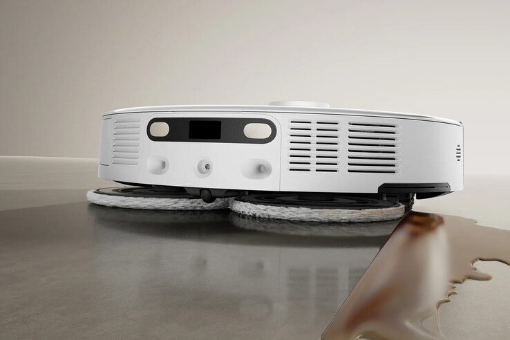 这也适用于后面两个旋转拖把中的一个,该拖把从外壳向侧面延伸,可以沿着底板和家具进行清洁。拖把的旋转速度高达每分钟 260 转,可通过 12 牛顿的向下压力去除污渍。实际效果如何还有待测试。一般来说,这种拖地技术不如滚筒拖把,如 Mova S70 滚筒拖把.