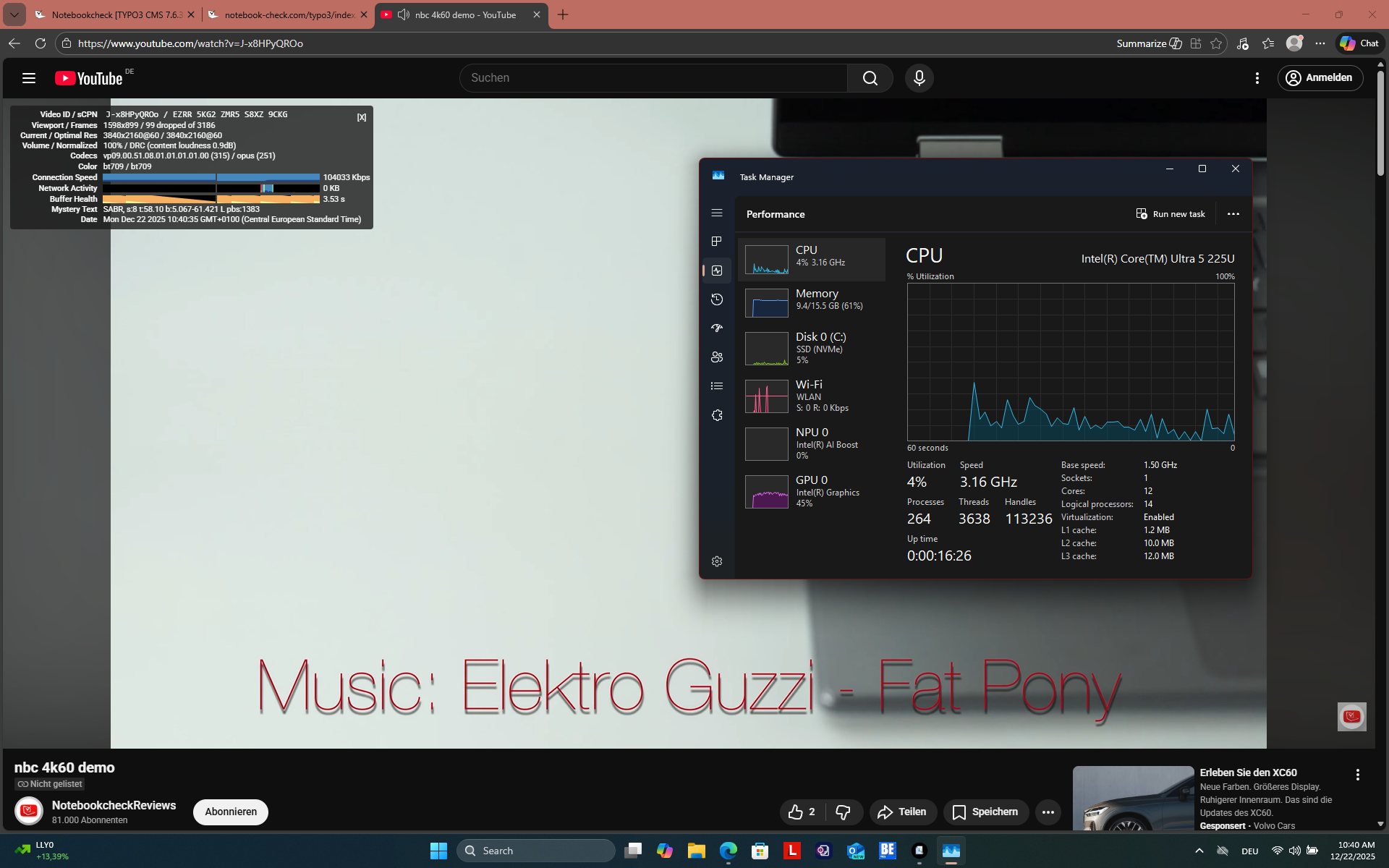 英特尔 英特尔酷睿至强 5 225U是英特尔箭湖系列中最基本的 U 系列 CPU。该 CPU 是酷睿至尊系列 1 "流星湖 "的升级版,拥有两个 Redwood Cove P 内核(最高主频 4.8GHz)、八个 Crestmont E 内核(最高主频 3.8GHz)和两个 Crestmont 低功耗 E 内核(最高主频 2.4GHz)--共计 12 个内核,由于两个 P 内核上的超线程技术,可提供 14 个线程。该 CPU 的典型 TDP 范围为 15 至 57 W。 CPU 列表可用于与其他处理器进行比较。