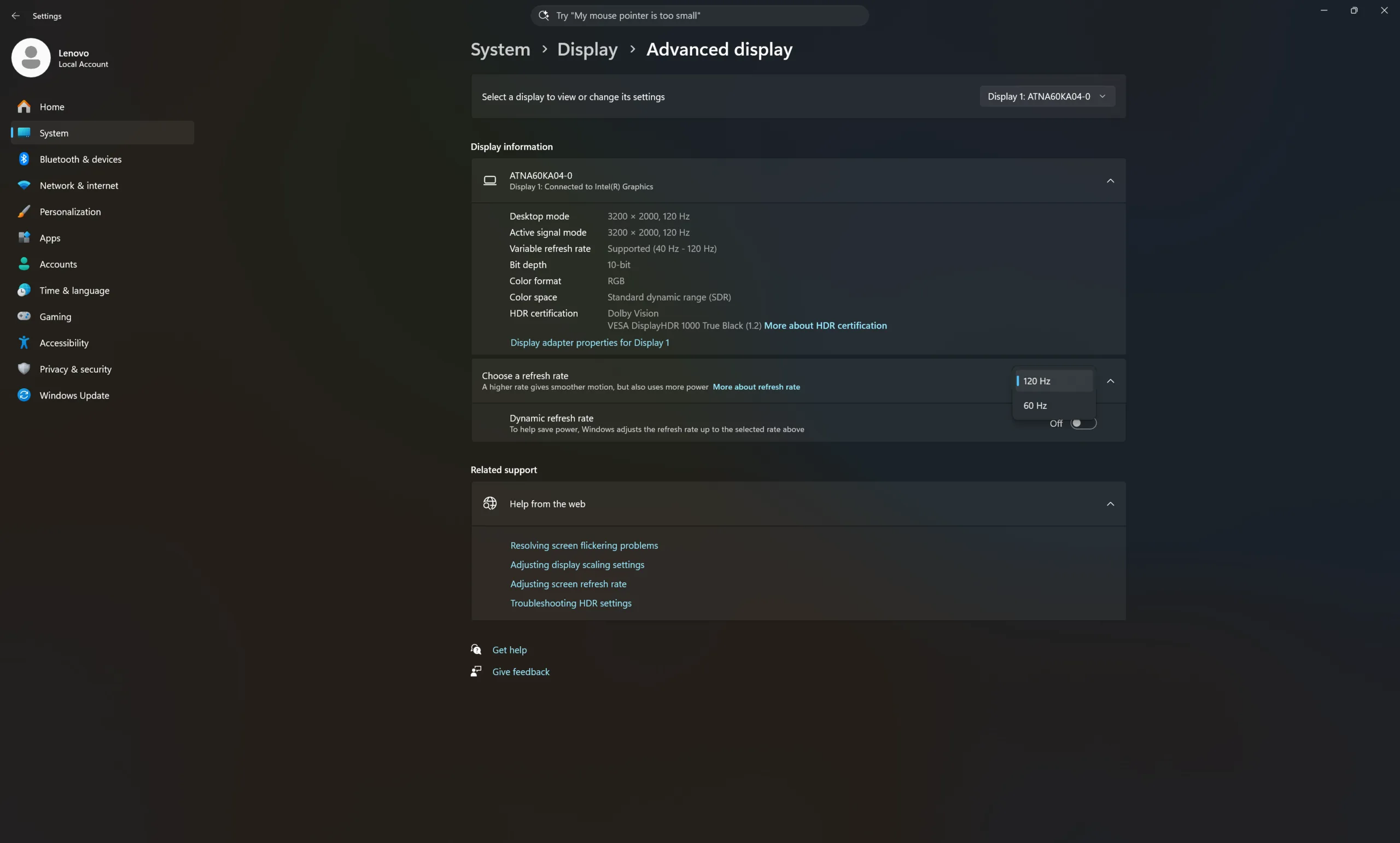 联想笔记本电脑的高刷新率显示器一直设置为 60 赫兹。以下是简单的修复方法