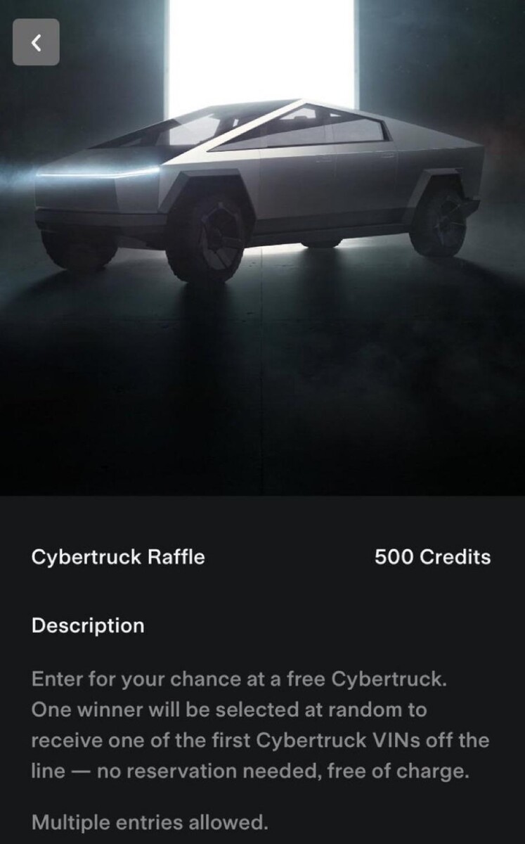 特斯拉如果不宣布有机会在一次珍贵的抽奖活动中赢得其炙手可热的新车之一,那就不是特斯拉了。特斯拉推荐计划的参与者在他们的战利品箱中发现了一个赢得特斯拉免费网络卡车的机会。