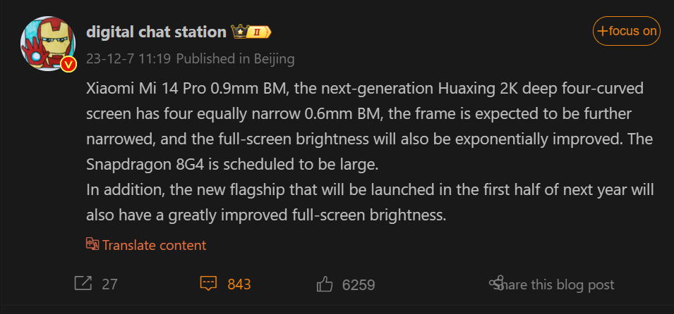 爆料者之前的报道 曝光了小米 15 和 15 Pro 的屏幕小米 15 和 15 Pro 预计将配备的屏幕。该爆料者称,标准机型将保留平面显示屏,屏幕尺寸与前代小米 14 和小米 13 相同。至于 15 Pro,据说它将采用略微弯曲的 2K 显示屏,边框窄至 0.6 毫米。