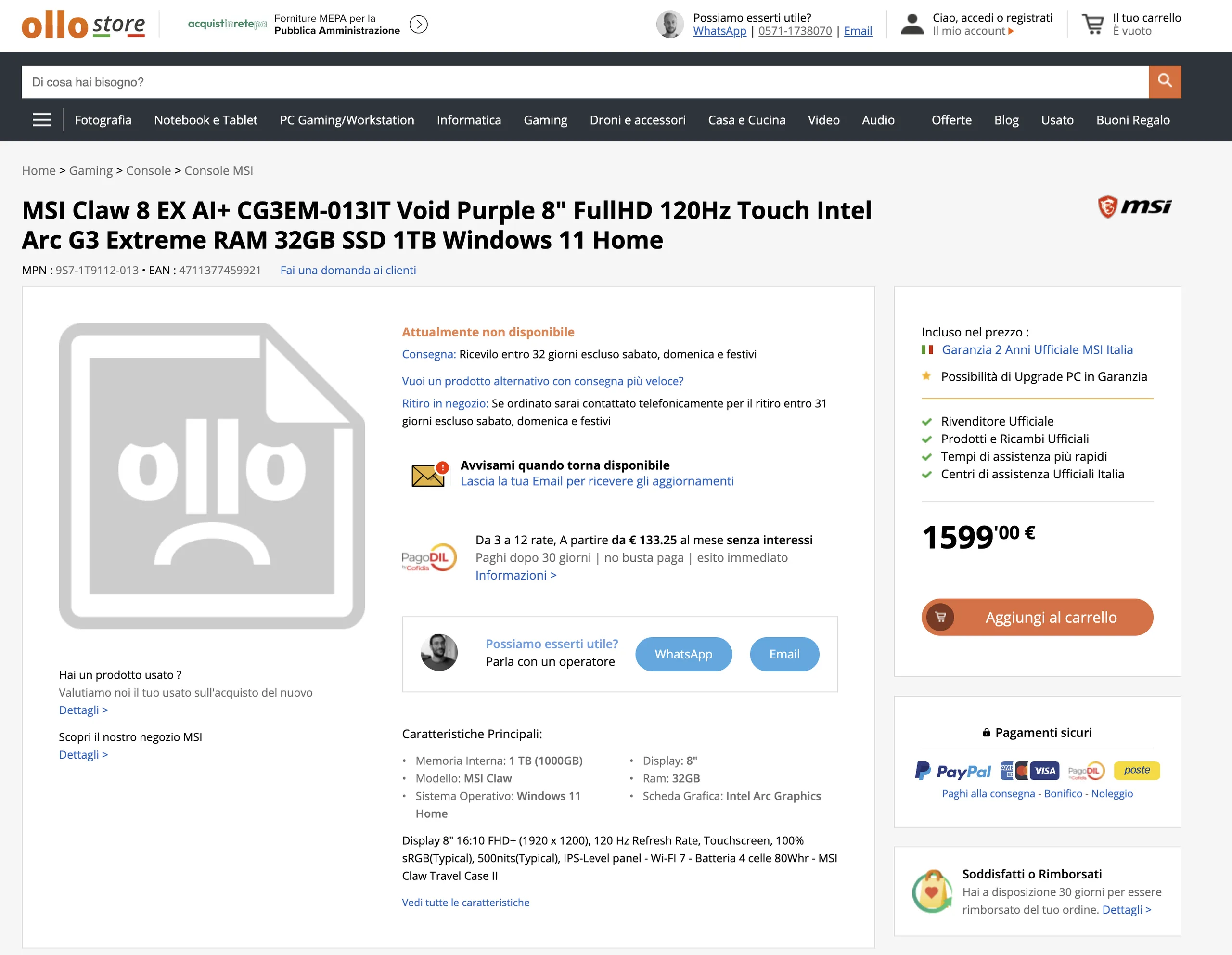 一家意大利零售商刚刚 透露了微星期待已久的冰川蓝新款 Claw 8 AI+ 的价格信息。与此同时,Ollo Store 也分享了有关 Claw 8 EX AI+ 的初步信息,我们在下面嵌入了相关证据。
