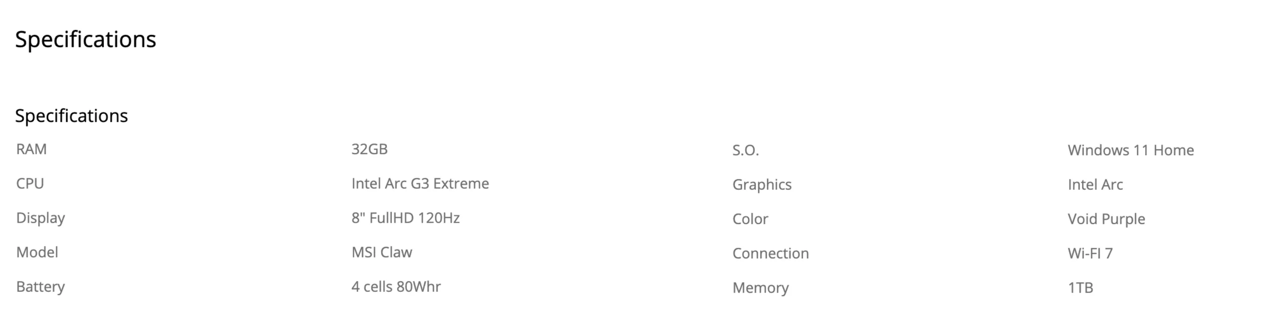 微星已经推出了 Claw 7 AI+, Claw 8 AI+和 Claw A8(在过去十八个月左右的时间里,Claw8 EX AI+、Claw 8 AI+ 和 Claw A8(亚马逊当前售价 1299 美元)相继上市。据 Ollo Store 称,Claw 8 EX AI+ 采用了 Arc G3 Extreme 芯片组,这是一款未公布的芯片组。 一月份出现本月早些时候 本月早些时候.