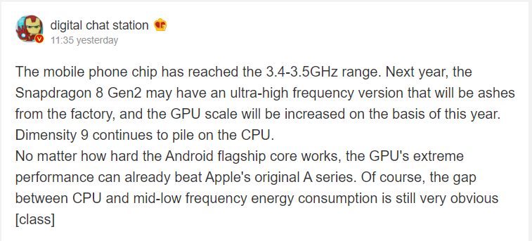 高通骁龙8代可能会推动其 "Prime" (Cortex-X3)CPU核心达到3.4-3.5 GHz,使其与Apple"新公布的 A16 Bionic.该SoC可能有两个变种,其中一个具有更高的提升时钟。然而,这种说法可能是指其继任者--骁龙8+第二代(暂定),因为一起推出两种不同规格的产品没有什么意义,尤其是在移动AP领域。
