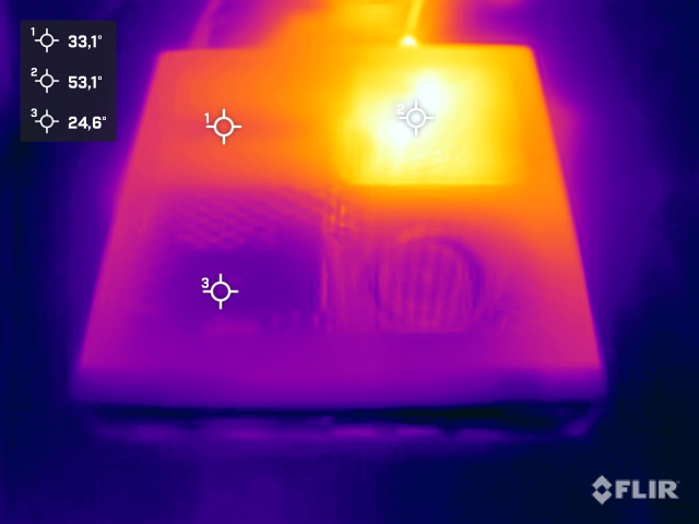(-) The bottom heats up to a maximum of 45.4 °C / 114 F, compared to the average of 36.4 °C / 98 F