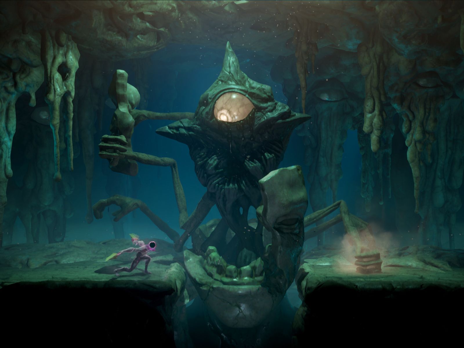 没有人知道你是谁,甚至连你自己也不知道,你化身为一个用黑洞代替脸的生物。在这个充满神秘色彩的 3D 世界中,你必须穿越洞穴和其他环境,揭开秘密,从而发现自己的真实身份。但在途中,你会遇到许多可怕的生物。它们拥有不同的能力和弱点,你必须加以利用。你将与活生生的武器作战。