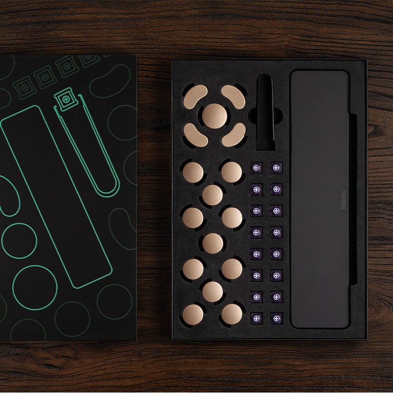 升级套件附带 16 个 Kailh Purple Glede 线性开关,这些开关具有静音功能,预行程距离更短,仅为 0.8 毫米。8BitDo 还附送了金色键帽,以取代随控制器附送的黑色和红色键帽。买家还可以在包装盒中找到一个键帽拔出器和一个腕托。