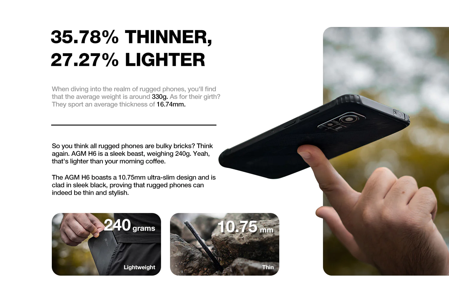 智能手机 足够坚固能经受水浸泡、灰尘侵袭和 1.5 米或更高跌落的智能手机听起来似乎是理想的户外伴侣,但根据 AGM Mobile的说法,它们在实际使用中的表现却大相径庭。 腰围和重量在实际携带过程中会增加腰围和重量。