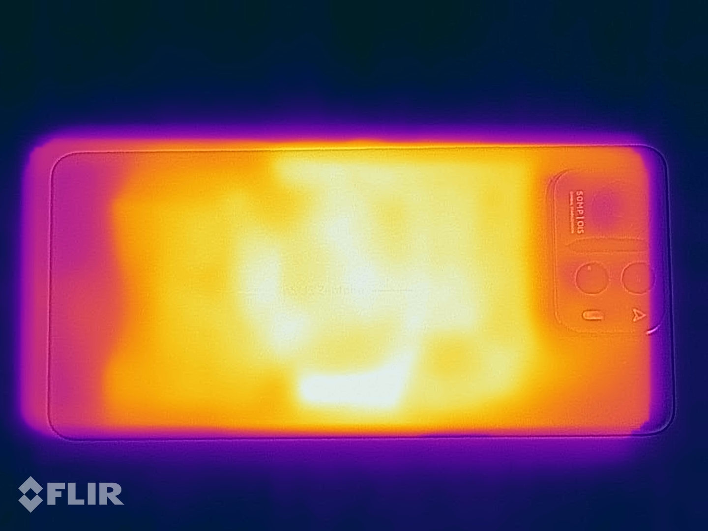 (-) The maximum temperature on the upper side is 56 °C / 133 F, compared to the average of 35.2 °C / 95 F, ranging from 21.9 to 247 °C for the class Smartphone.