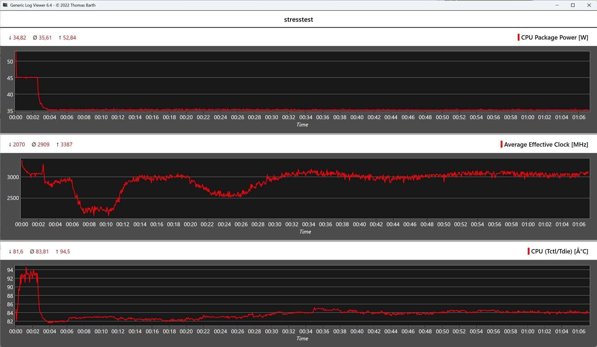 由于采用了精密的散热设计,Alliwava H90 Pro 的外壳即使在高负载情况下也能保持低温。只有在后部通风口区域有明显的升温现象。在压力测试中,AMD Ryzen 7 8745HS 的温度曾短暂达到 94 C 左右,但仍在安全范围内。APU 的平均功耗约为 35 瓦。