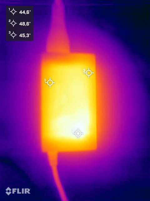 (±) The bottom heats up to a maximum of 43 °C / 109 F, compared to the average of 39.3 °C / 103 F