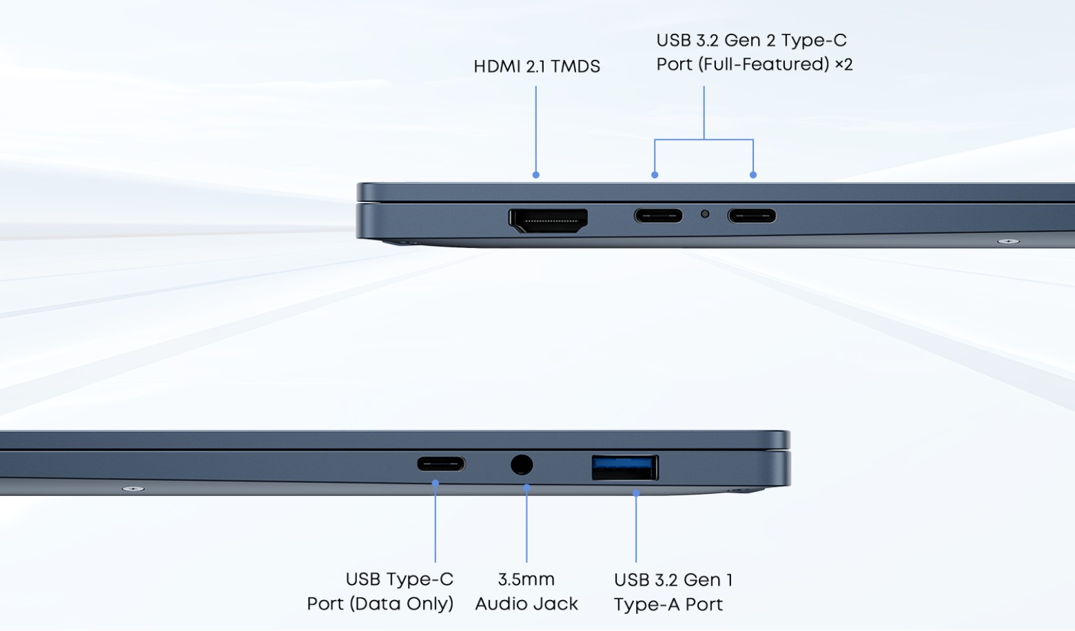 Chuwi 将 CoreBook Air 定位为面向价格敏感型用户的紧凑型工作笔记本。这款 14 英寸设备采用 AMD Ryzen 5 6600H,为典型的办公任务和多任务处理提供了充足的性能储备。其他功能还包括 16 GB 内存和快速固态硬盘,使系统在日常使用中保持愉悦的响应速度。雾面 IPS 显示屏可确保在不同光线条件下都能正常显示。操作系统为 Windows 11,这意味着笔记本电脑可立即投入使用。