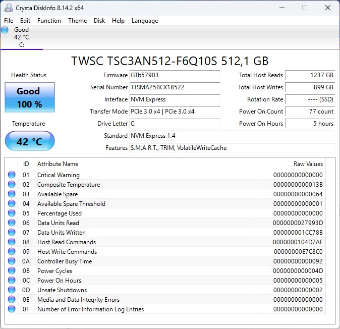 | Chuwi CoreBook Air R5 6600H, Radeon 660M, TWSC TSC3AN512-F6Q10S, IPS, 1920x1200, 14" | HP Omnibook 5 14 SD X Plus X1P-42-100, Adreno X1-45 1.7 TFLOPS, Samsung PM9C1 MZVL81T0HELB-00BTW, OLED, 1920x1200, 14" | Lenovo IdeaPad Slim 5-15ARP G10 R7 7735HS, Radeon 680M, Western Digital PC SN5000S SDEPMSJ-512G, IPS, 1920x1200, 15.3" | Ninkear S14, 16+1TB R5 7535HS, Radeon 660M, Faspeed P8-1TB-LB1, , 2240x1400, 14" | Asus ExpertBook B1 B1403CVA i5-13420H, UHD Graphics Xe G4 48EUs, Western Digital PC SN5000S SDEQNSJ-512G-1002, IPS, 1920x1080, 14" | Chuwi CoreBook X R5 7430U, Vega 7, AirDisk APF 10-512G, IPS, 2160x1440, 14" | Average AMD Radeon 660M | Average of class Subnotebook | |