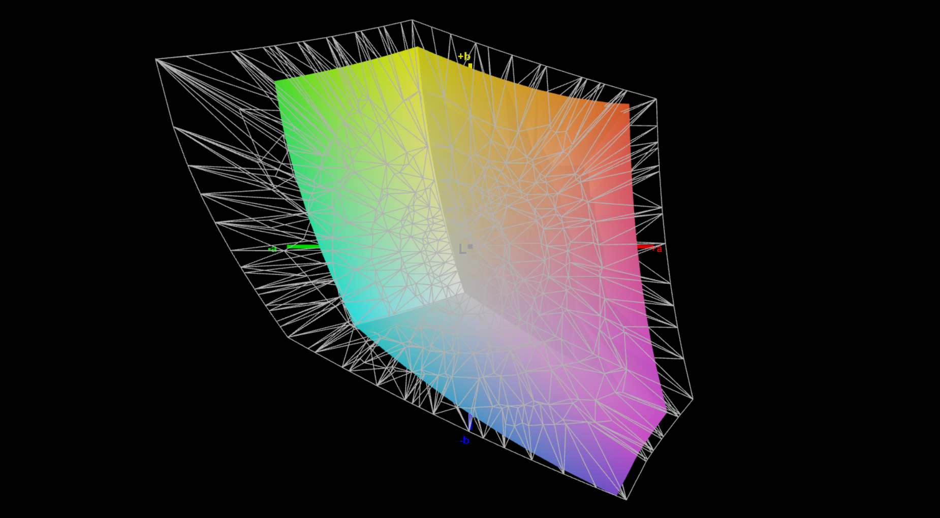 广告宣传的亮度为 500 cd/m²,我们的样品并没有达到这个亮度(最高 489,平均约 470 cd/m²)。不过,黑阶较低,因此最大对比度非常好。出厂时的校准较弱,我们可以通过自己的校准(可在右侧框中免费下载配置文件)来显著改善显示效果,但这也会使最大亮度降低约 40 cd/m²。由于完全覆盖了 sRGB,因此还可以进行图像编辑。