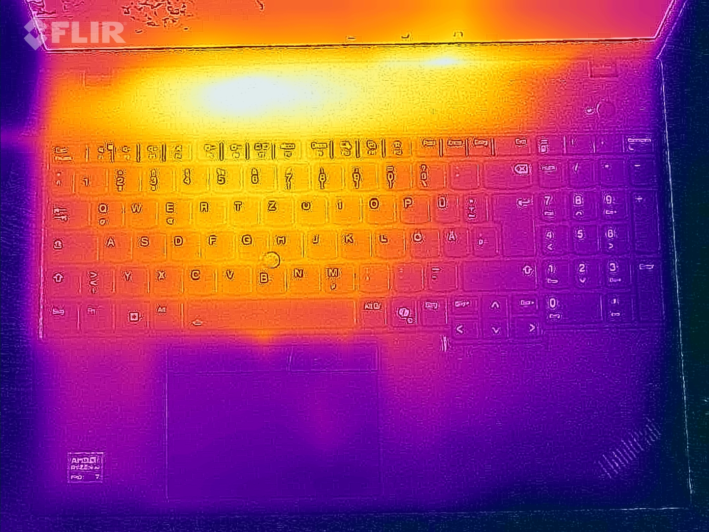 (+) The palmrests and touchpad are cooler than skin temperature with a maximum of 26.8 °C / 80.2 F and are therefore cool to the touch.