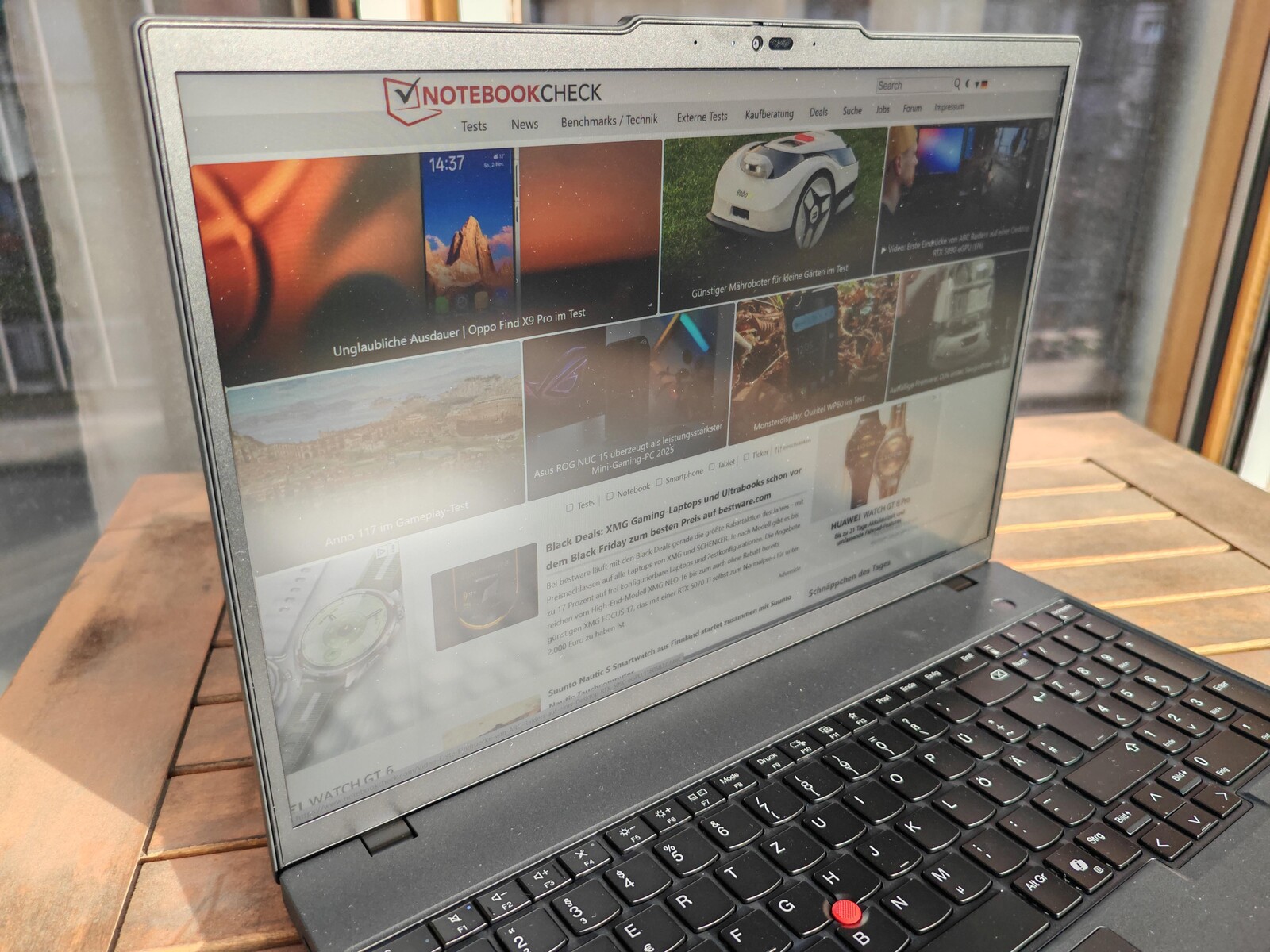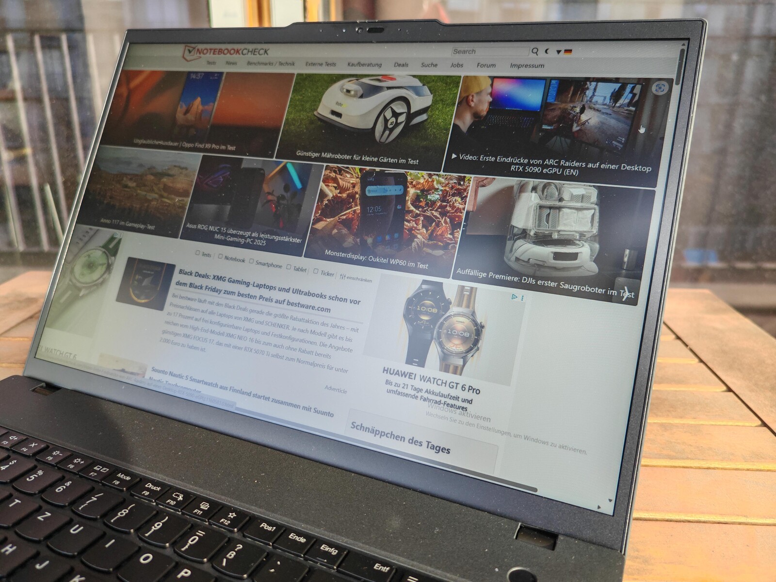 我们的测试设备安装了低功耗版的哑光全高清面板(IPS,1,920 x 1,200 像素)。主观画质良好,色彩鲜艳,即使是明亮的表面也不会出现颗粒感。虽然面板仅支持 60 Hz,但也没有 PWM 闪烁的问题,响应时间也可以接受。不过,总的来说,它非常适合工作。