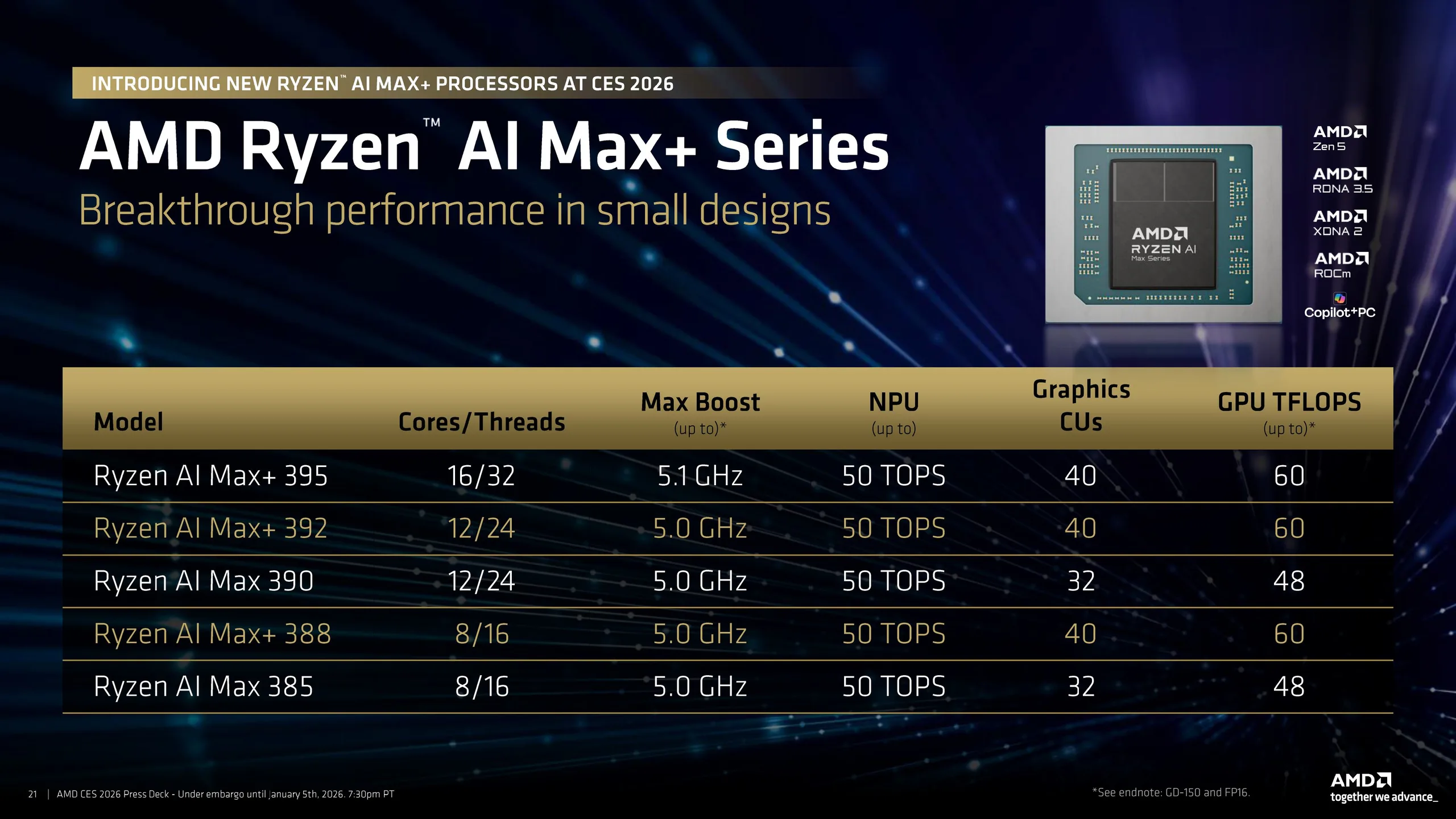 AMD 将这两款 APU 命名为 Max+,因为它们现在提供 40 个 RDNA 3.5 计算单元(CU),可产生高达 60 TFLOPs 的 GPU 计算能力。