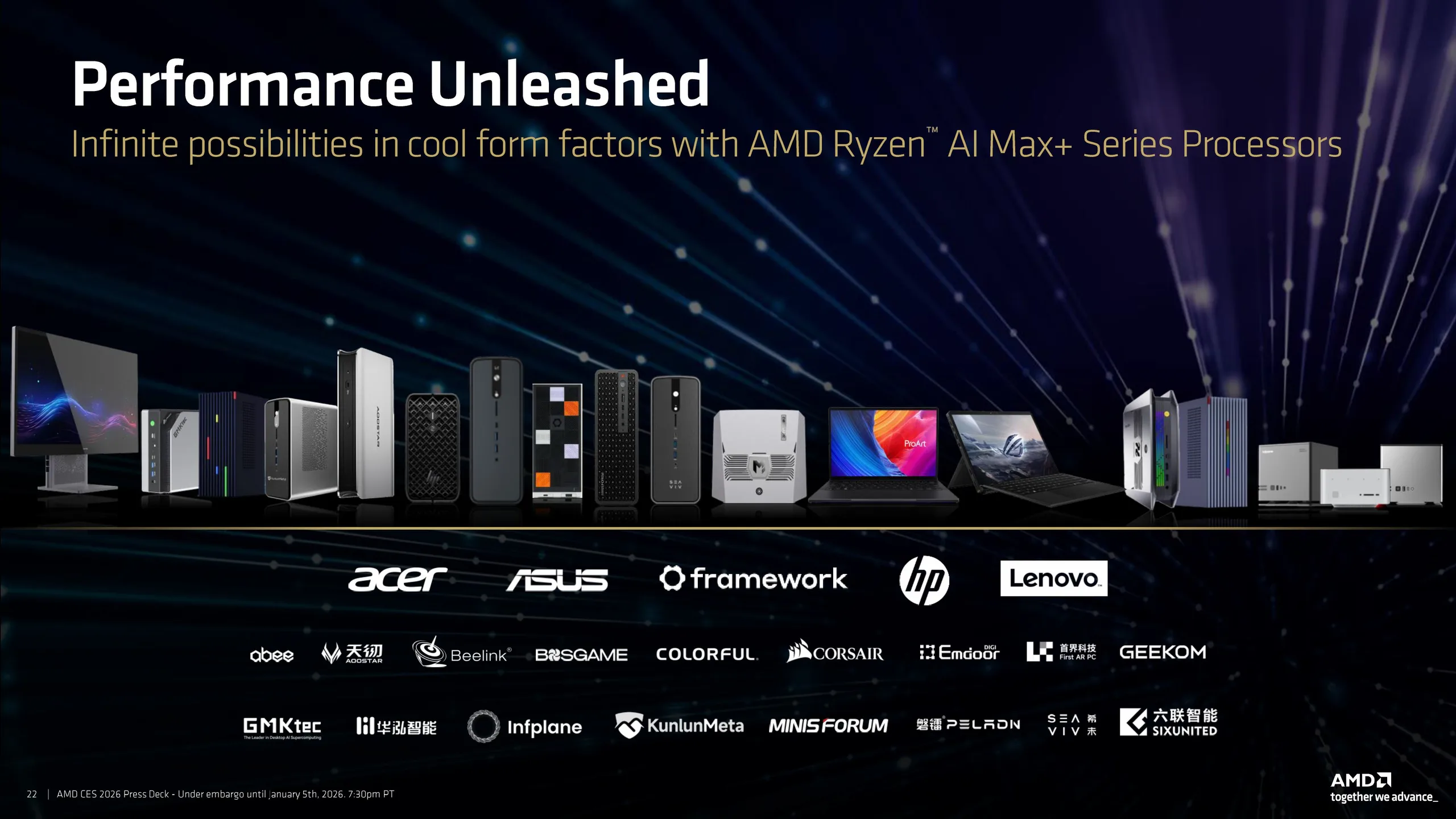 宏碁(Acer)、华硕(Asus)、Framework、惠普(HP)和联想(Lenovo)将推出搭载 Ryzen AI Max+ APU 的新型笔记本电脑。我们还看到了像 GPD Win 5等游戏掌机,它们由 Strix Halo 提供动力,同时运行 Windows 11 和 SteamOS。