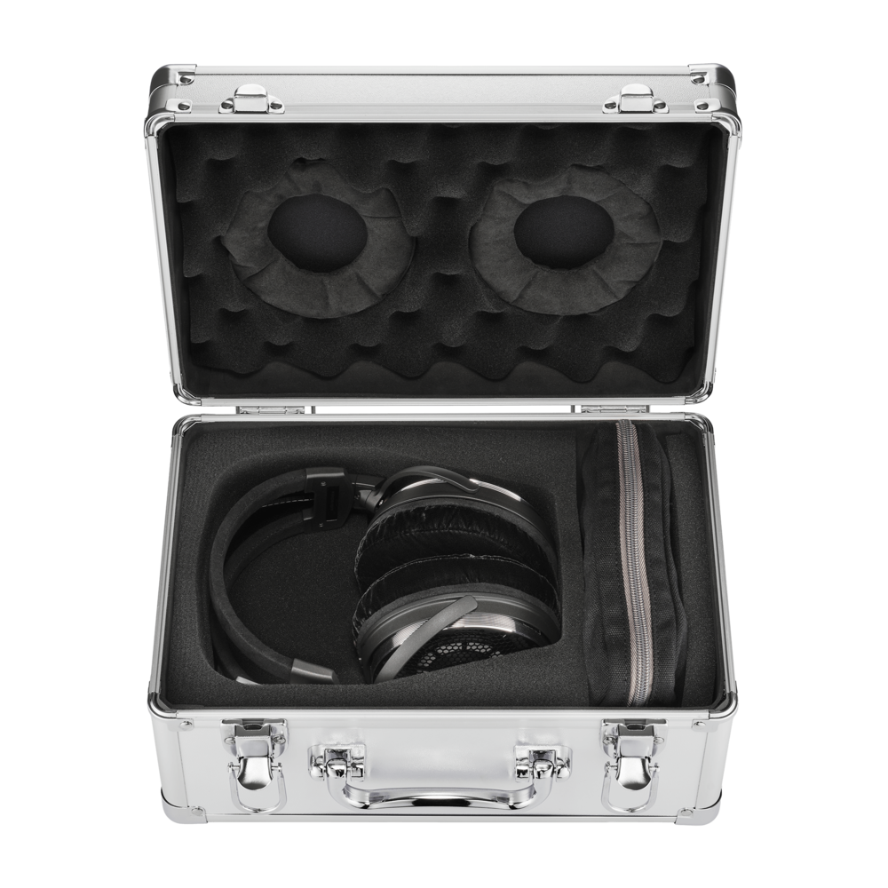 每对耳机都配有一个小巧的硬质便携箱,铁三角还在包装盒中附送了两条可拆卸的 3 米长尼龙包裹线缆--一条是带 4 针 XLRM 接头的平衡线缆,另一条是带 6.3 毫米镀金立体声插头的非平衡线缆--两条线缆都使用了铁三角的 A2DC 接头。