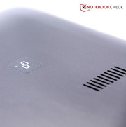 The touchpad is right in the middle of the palm rest and features the same aspect ratio as the display (16:9). The size of the touchpad - 9.7 centimeter (3.82 inches) - is quite decent considering the dimensions of the dock. The surface allows fingers to glide easily and input works reliably. Multi-touch gestures are supported and also work well. The system recognizes accidental touches of the palm while typing and ignores them.