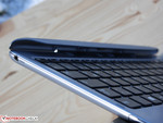 The wrist rest features a pleasant size and allows incorporating a sufficiently sized touchpad for its dimensions. The 9.6 centimeter in diagonal field is a ClickPad with buttons incorporated beneath it. The pad's just still sufficient key drop is not as agreeable when a mouse click is performed in the center. The right and left mouse button underneath the pad's front feature a long, smooth drop and firm stop. The keys' click noise is very loud and will soon get annoying in, for example, the library.